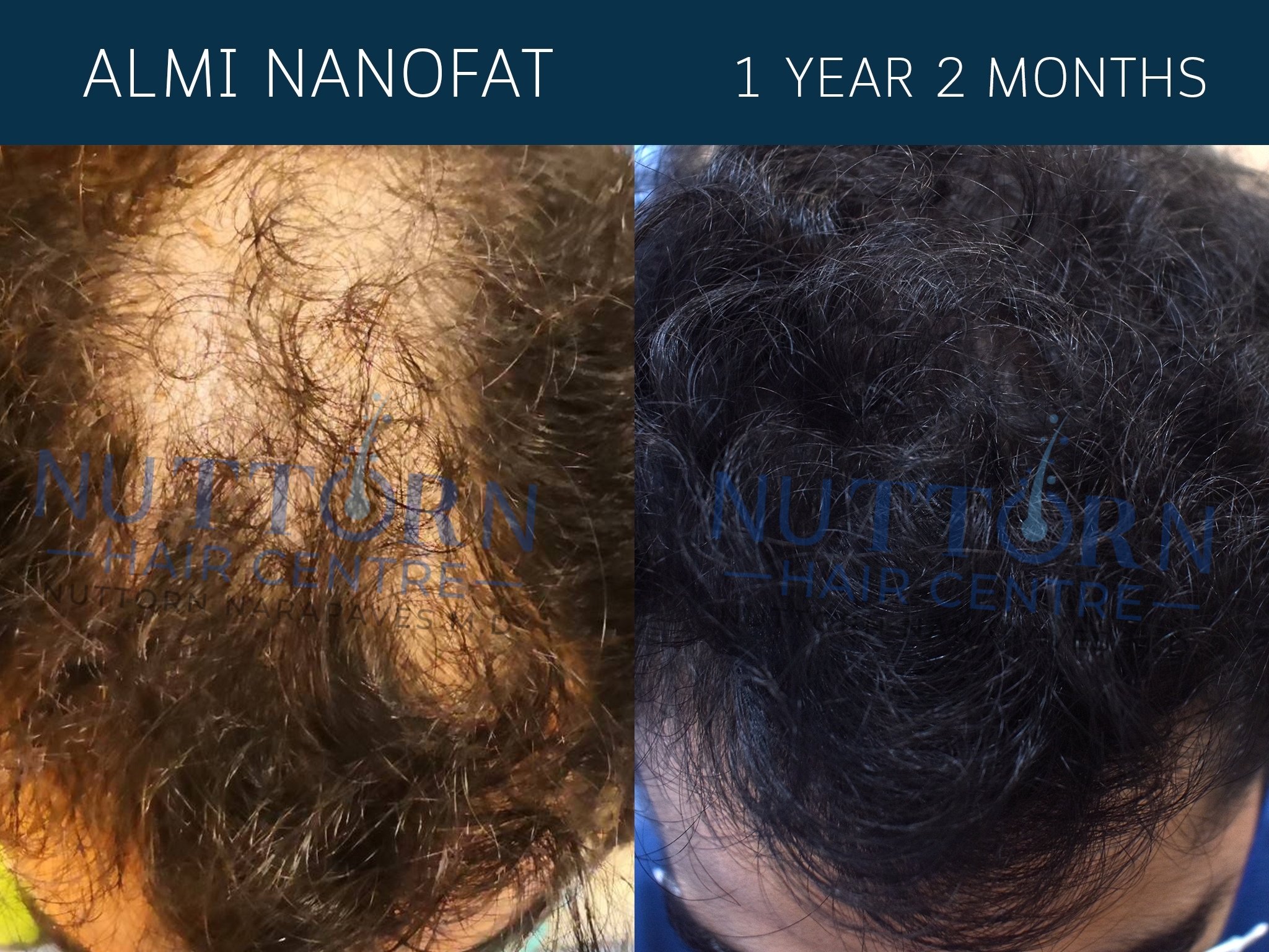 ALMI Nanofat can achieve noticeable improvements in hair thickness and density, with results lasting up to a year.